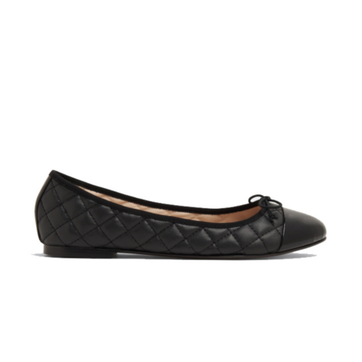 A must have in any girl’s wardrobe! The Ines Black ballet flats are handmade and feature a classic diamond quilted pattern, a patent toe with a chic bow detail. A sophisticated and classic design that works across your full wardrobe, from a pretty fall dress to your favorite jeans.